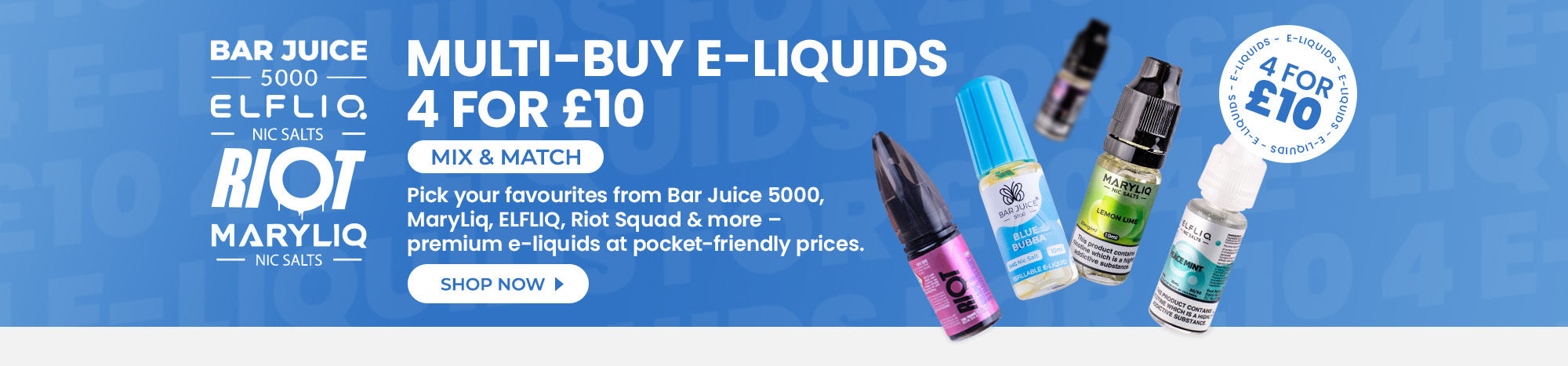 Explore our full range of e-liquids, featuring thousands of flavours across nicotine salt e-liquids, 50/50 blends for MTL vaping, as well as high VG shortfills for sub-ohm. From fruity and menthol to dessert and tobacco, we stock every nicotine strength and bottle size, plus multi-buy deals to help you save on your favourites.