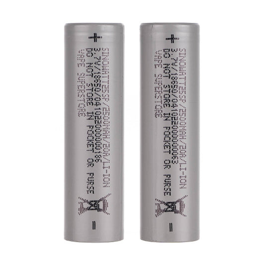 A pack of 2 Sinowatt 25SP 18650 batteries. Each battery has a 2500mAh capacity and are built to high specifications and approved for use with vape mods. The pack of 2 Sinowatt 25SP batteries are compatible with any dual 18650 mod. With a typical capacity of 2500mAh in energy and with up to 20 amps in maximum continuous discharge.