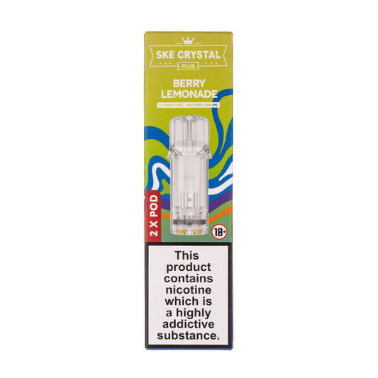 The SKE Crystal Plus Berry Lemonade Prefilled Pods are designed for use with the SKE Crystal Plus Pod Kit only. Dazzle your tastebuds with a mixture of mixed berries and sparkling lemonade. A popular flavour amongst vapers all round the globe.