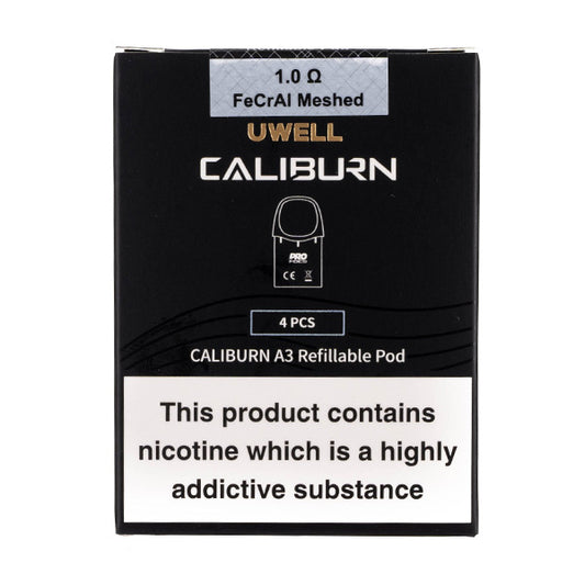 A pack of 4 replacement pods for the Caliburn A3 Pod Kit. The 2ml capacity pods feature a larger viewing window to help you keep track of how much e-liquid you have remaining.