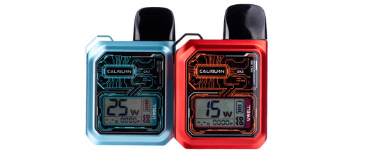 Discover the UWELL Caliburn GK3, a versatile 25W pod kit featuring a stylish design with a large 80's retro digital display and made from a robust zinc alloy. The Uwell Caliburn GK3 is great for beginners and those looking for a compact on-the-go vape kit.