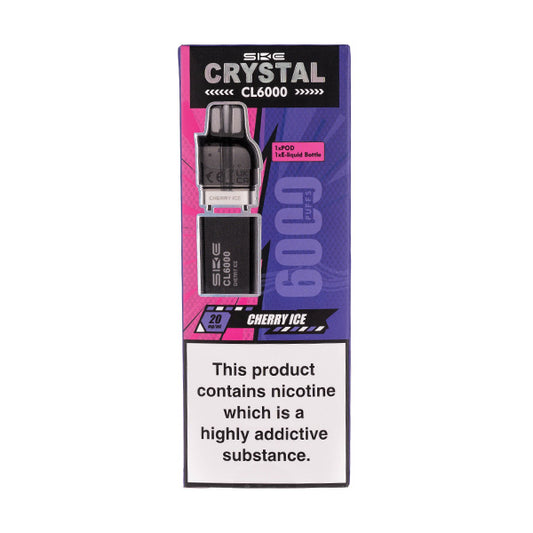 Cherry Ice Crystal CL6000 Prefilled Pod + Refill by SKE is solely compatible with the SKE Crystal CL6000 Disposable Vape. This pod and refill combines wild cherries with revitalising ice. A great all-year-round flavour combination.