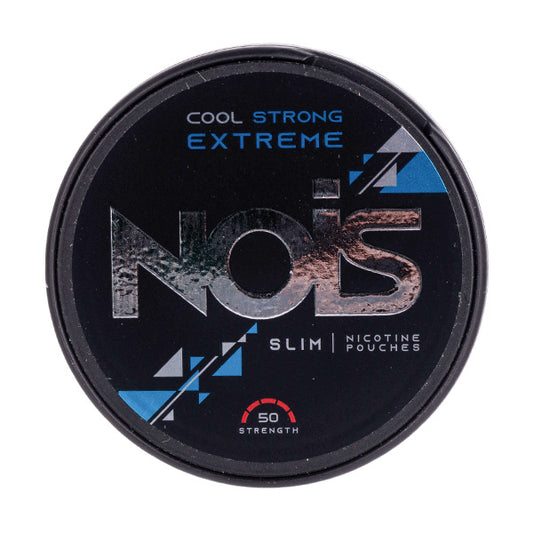 Nois Cool Strong Extreme nicotine pouches deliver a frosted, minty sensation that will cleanse your palate and also satisfy the strongest cravings. Each tin contains 27 pouches, available in 50mg/g or 25mg per pouch nicotine strength.