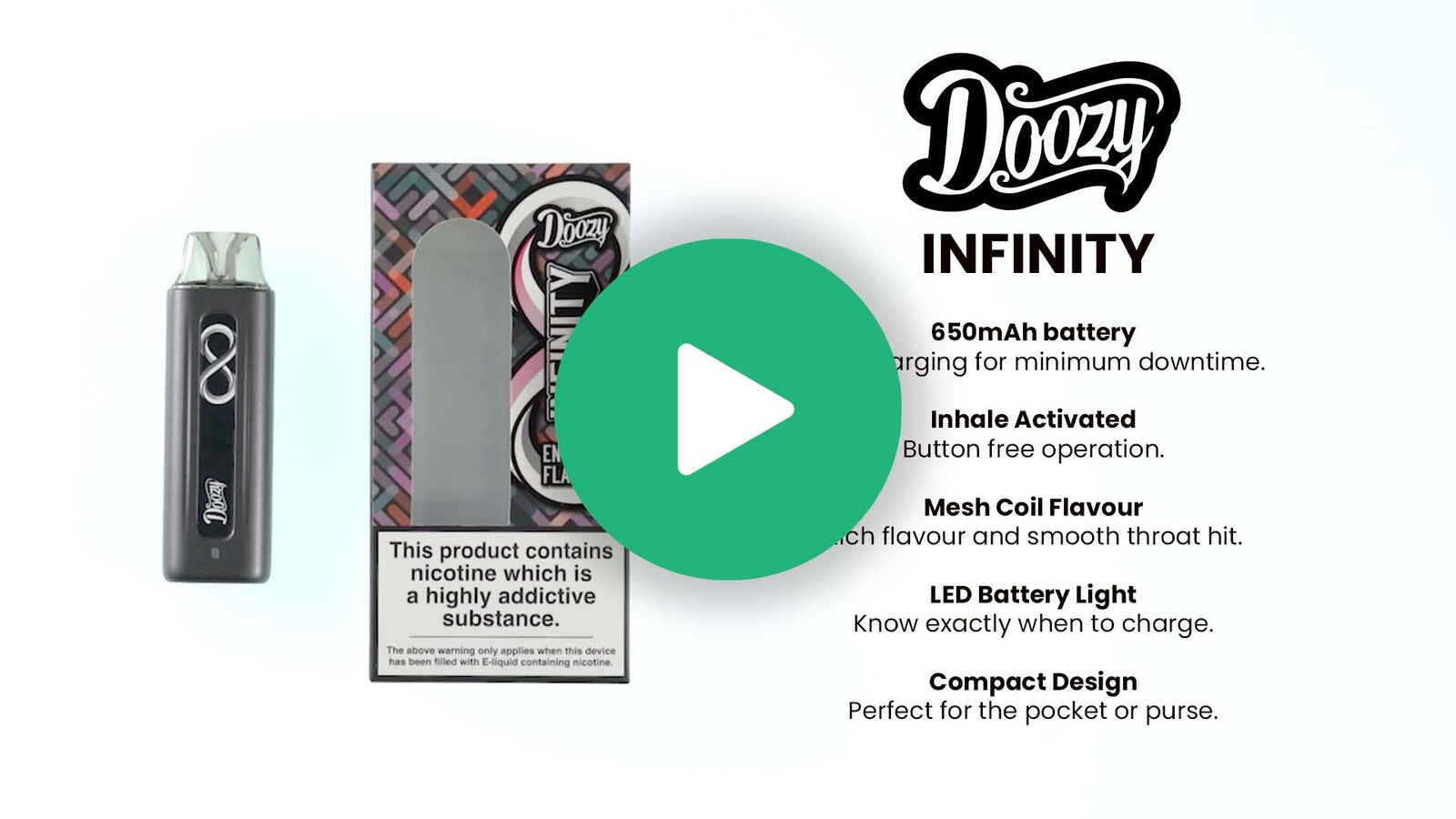 1 x Doozy Infinity Pod Kit - Refillable, lightweight vape, auto-draw for cigarette style inhale.