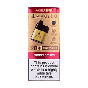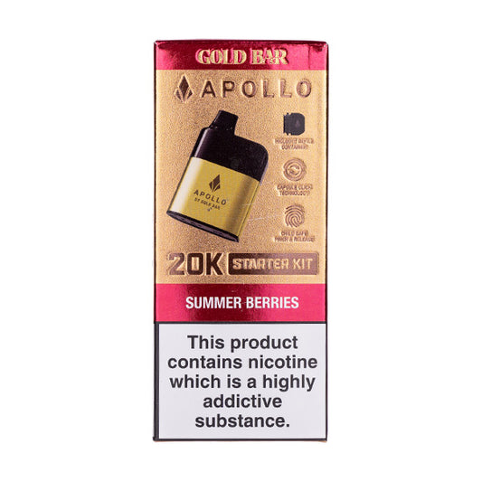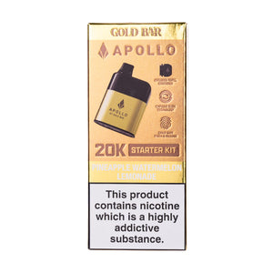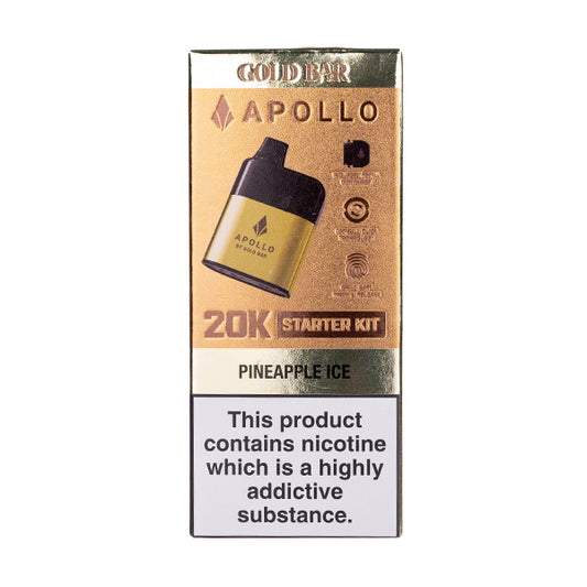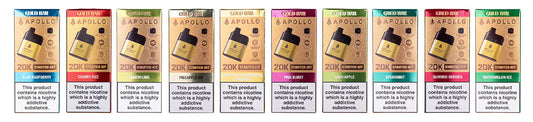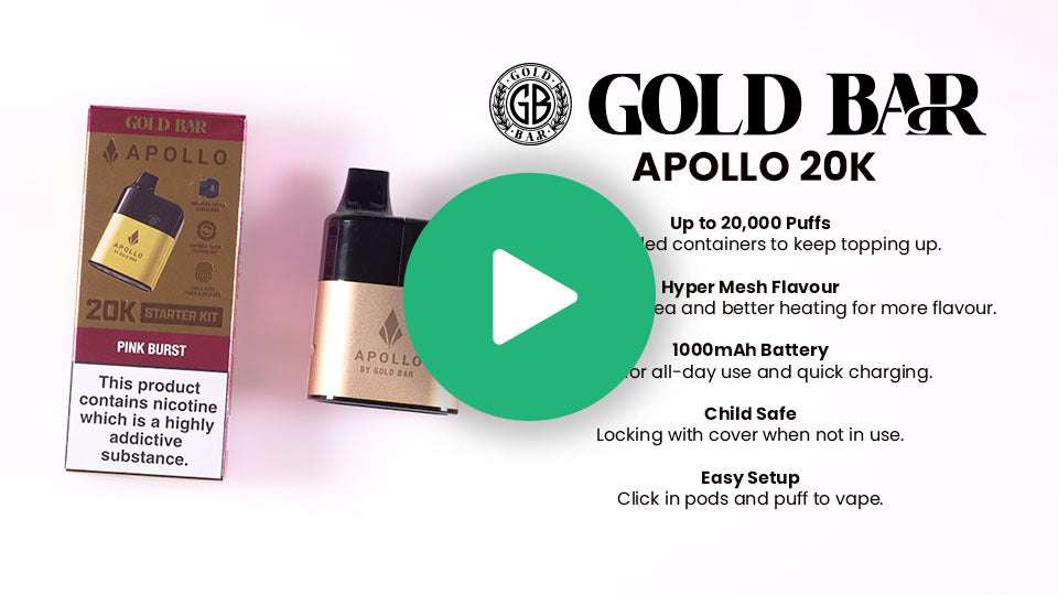 The Gold Bar Apollo 20k Pod Kit is a great option if you're looking for a big puff kit that can be recharged and reused with interchangeable pods. This prefilled pod kit provides up to 4,000 puffs right out of the box, using a 2ml prefilled pod and a 5ml refill container, and can deliver up to 20,000 puffs when used with three additional Apollo 20K Prefilled Containers, available in packs of two. Filled with 20mg of Gold Bar's greatest flavours, this small, pocket-sized bar 1000mAh battery that provides long use and excellent value.