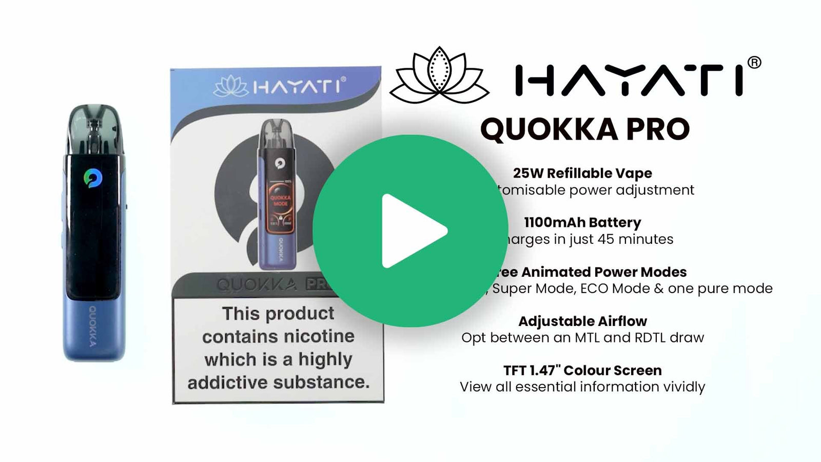 The Hayati Quokka Pro Pod Kit is the most feature rich device in the Quokka range. It is a refillable pod kit with a built in 1100mAh battery that can recharge from low to full in around 45 minutes using the included Type C cable. With up to 25W of power, adjustable airflow and mesh pod compatibility, it is well suited to both MTL and RDTL vaping.