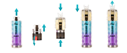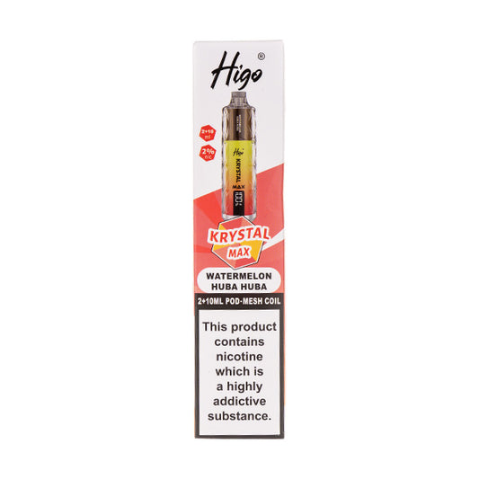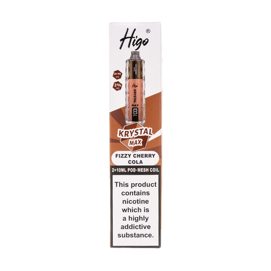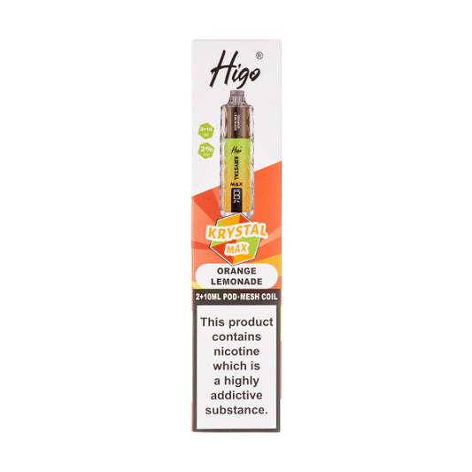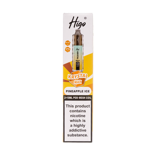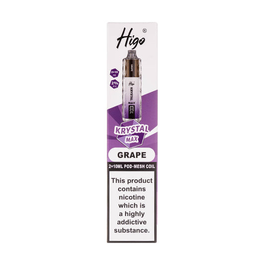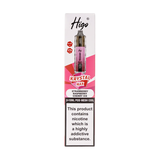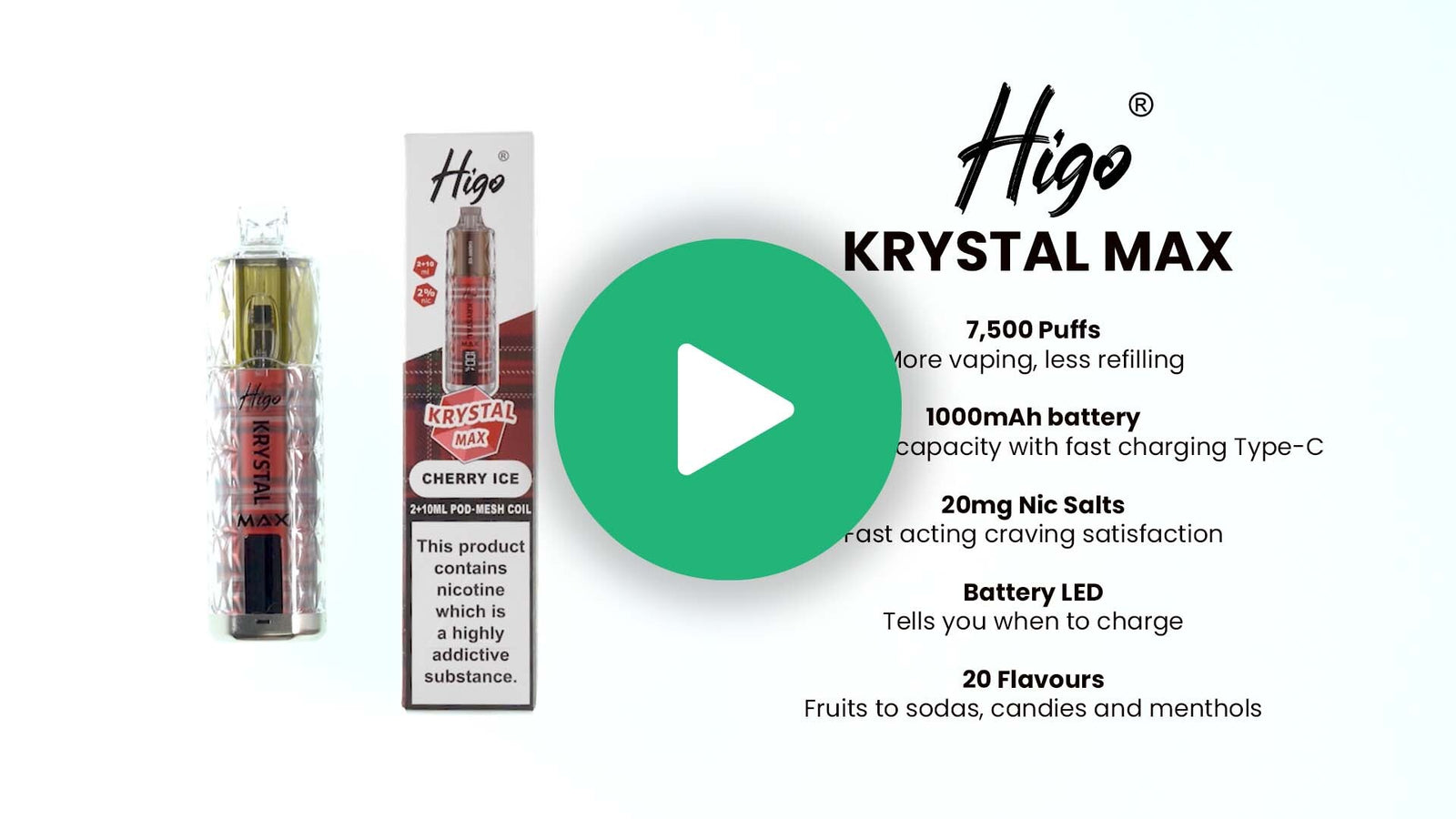 The Higo Krystal Max offers up to 7,500 puffs, thanks to its dual e-liquid system (2ml pod + 10ml refill chamber).