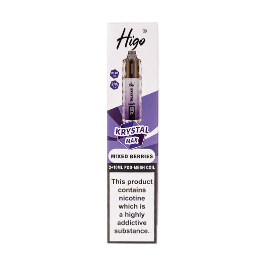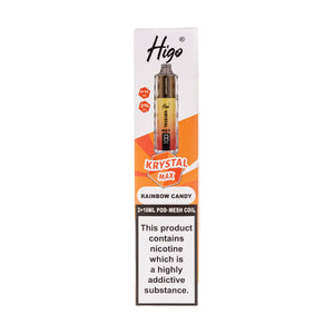 The Higo Krystal Max Prefilled Pod Kit is a compact MTL device designed for longer use with minimal fuss. It pairs a 2ml prefilled pod with a built in 10ml refill container to deliver up to 7,500 puffs per setup, all filled with 20mg nic salt for a smooth, satisfying hit.