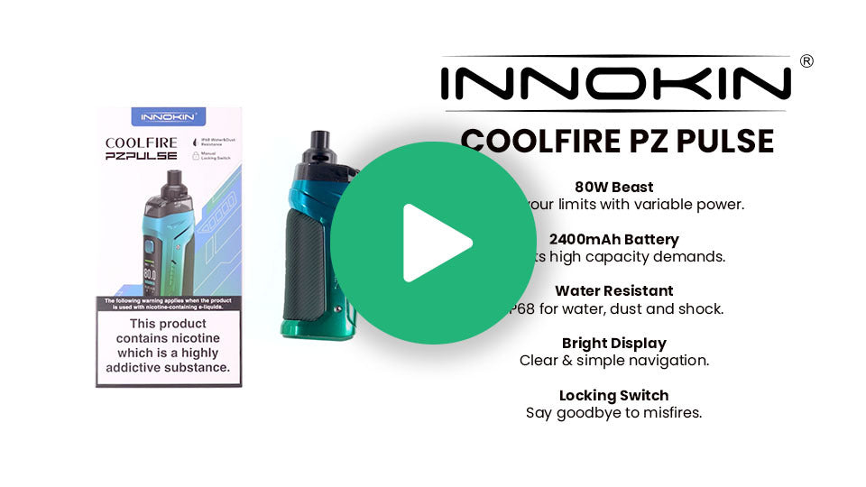 The Innokin Coolfire PZPulse Pod Kit is an 80W pod mod designed for vapers who want a durable, full featured DTL setup in a compact form. It pairs a 2400mAh internal battery with a 0.96" TFT full screen display so you can see power, battery level and coil information clearly at a glance.