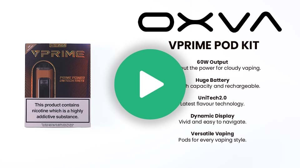 The OXVA VPrime is a versatile refillable pod kit that balances power and ease of use in a compact body. A 2600mAh built-in battery and adjustable output up to 60W give you plenty of headroom for MTL, RDTL or full DTL vaping. It’s button or inhale activated for simple day-to-day use and recharges quickly via USB-C.