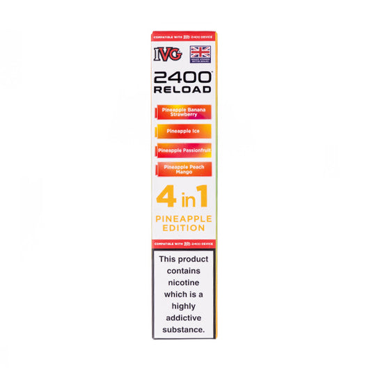 The Pineapple Edition IVG 2400 Reload Replacement Pods are designed for use in the IVG 2400 Reload Prefilled Pod Kit. The Edition series features four pods, each with a unique flavour.