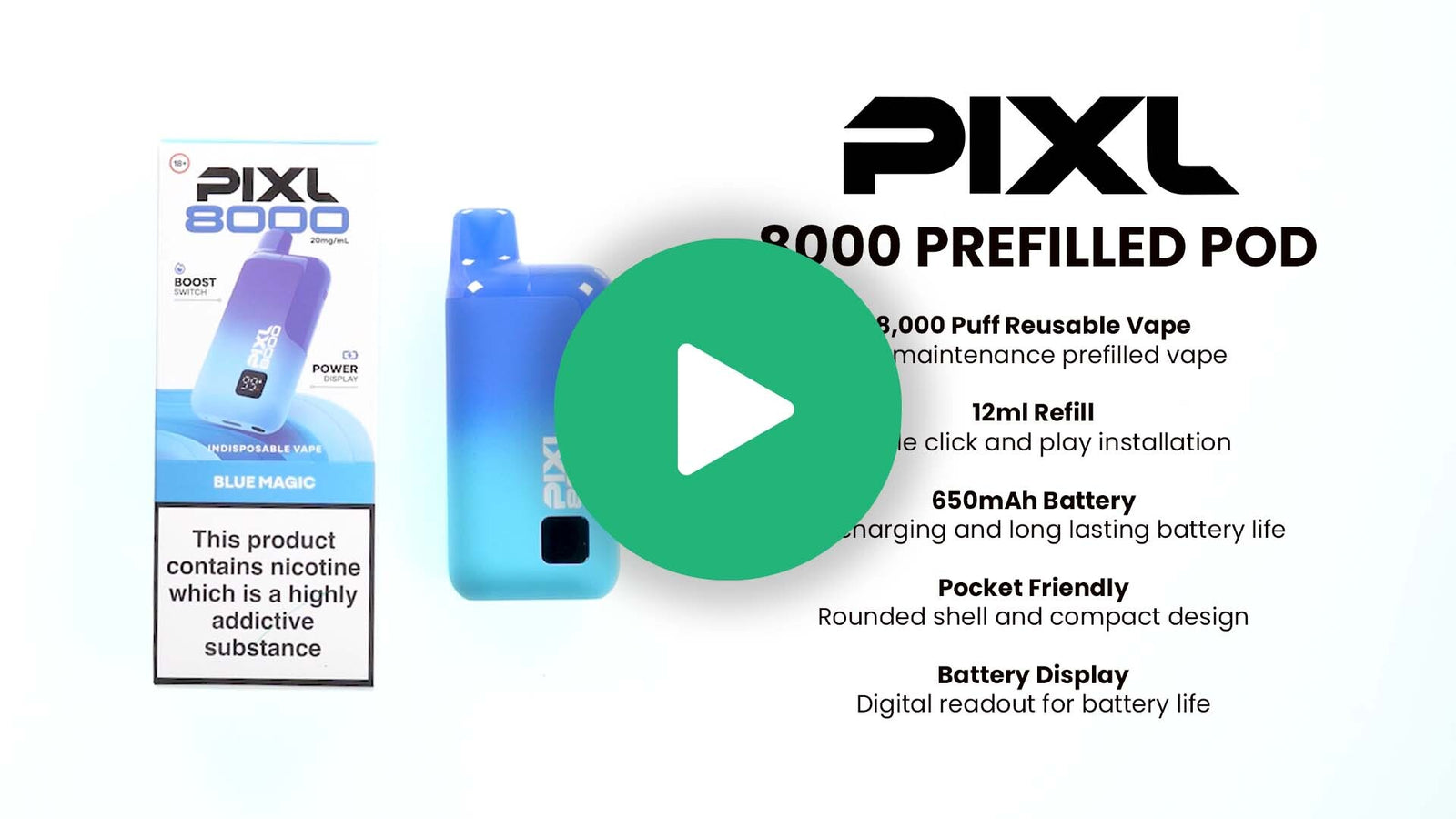 The Pixl 8000 is an outstanding pre-filled pod kit version of Pixl's popular release, the Pixl 6000 Disposable Vape. Integrated within this outstanding closed pod kit is a 650mAh battery that can quickly be recharged via a Type-C cable. It also boasts up to 8000 puffs (2000 more than its predecessor) straight out of the packet, utilises inhale inactivation, and uses interchangeable pods, allowing this kit to become your permanent fixture.