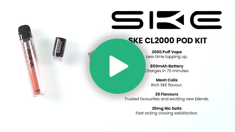 Each kit includes 1 x SKE CL2000 Battery, 1 x SKE CL2000 2ml Refill Pod, and 1 x SKE CL2000 2ml Refill Tank.