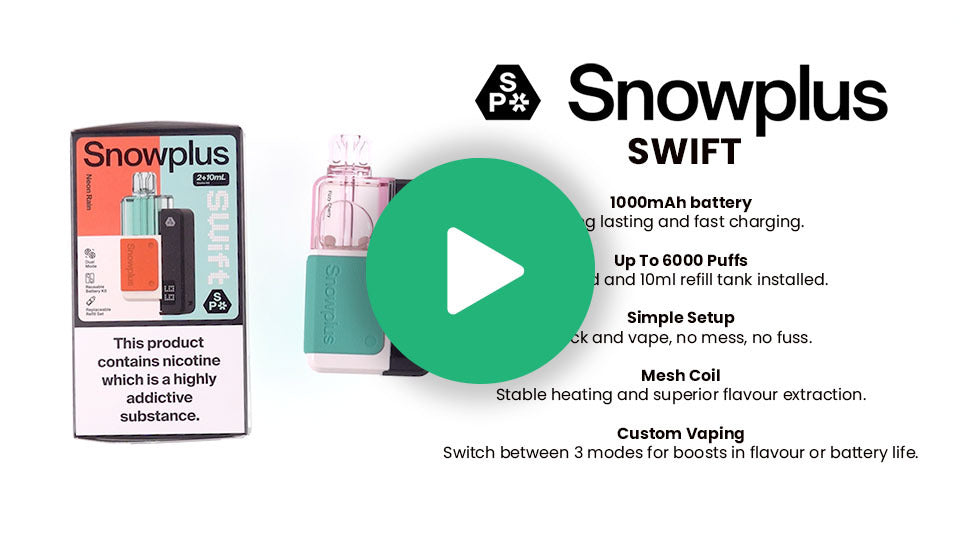 The Snowplus Swift Pre-filled Pod Kit is a compact closed-pod vape that delivers up to 6000 puffs of simplicity without compromise. Designed for mouth-to-lung (MTL) vaping, it comes prefilled with 12ml of nic salt e-liquid and features Dual-Mesh coil technology to boost flavour and vapour. With a powerful 1000mAh rechargeable battery and inhale activation, the Swift offers long-lasting performance in a sleek, fuss-free design. Ideal for beginners and experienced vapers alike, it’s a smooth switch from disposables with none of the complexity.