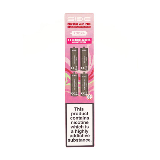 The SKE Crystal 4 in 1 Ultimate Edition Prefilled Pods are designed for use with the SKE Crystal 4 in 1 pod kit only. Enjoy a unique flavour with every pod and keep things fresh with 4 delicious fruit flavour combinations to tantalise your tastebuds.