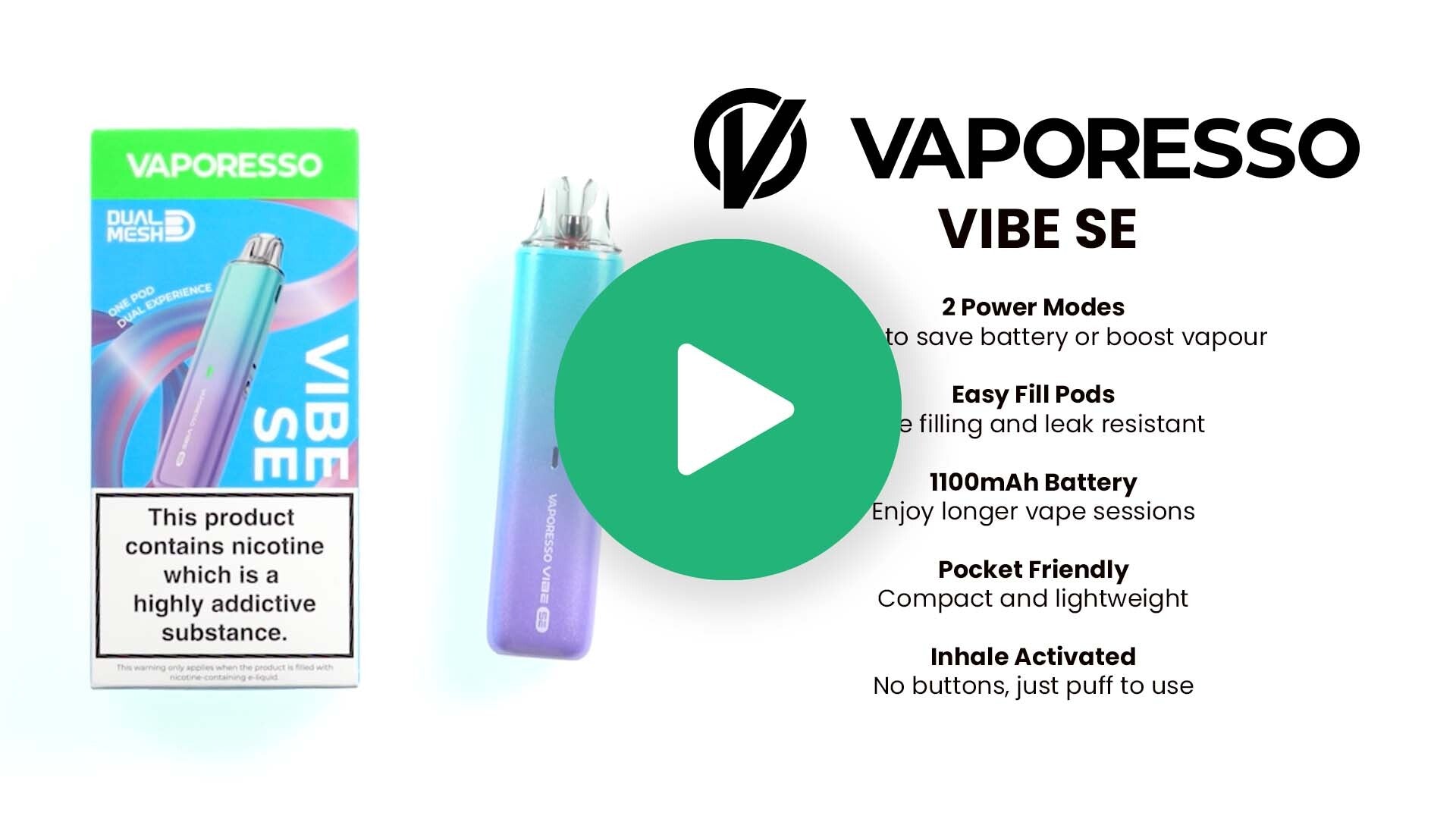 Unleash the force of the Vaporesso Vibe SE Pod Kit, a versatile and low-maintenance pod kit designed for ultimate convenience. This trendy and compact pod kit boasts a powerful 1100mAh battery with Type-C charging. With the option of two powering modes (ECO or POWER), you can easily customise your experience with just a simple slide. Let's dive into all the wonderful features this kit has to offer.