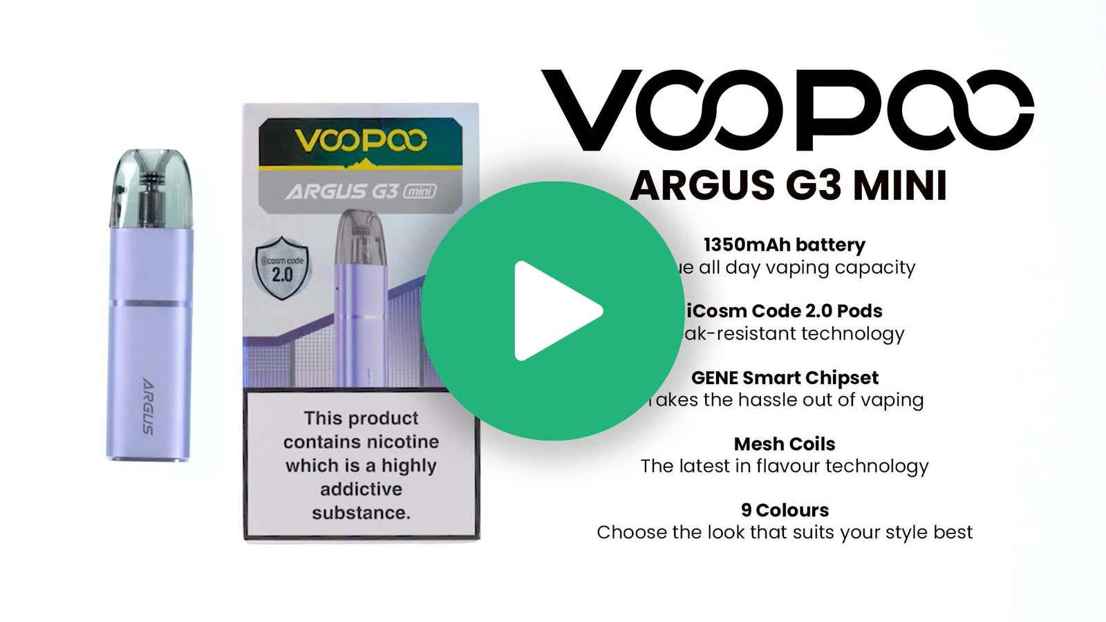 Voopoo’s Argus G3 Mini Pod Kit packs a 1350mAh battery, Type-C fast charging and the GENE Smart chipset’s auto-wattage Smart Mode into one pocket-friendly vape. The inhale-activated, refillable pod ships with a 0.7Ω mesh coil, top-fills cleanly and stays mess-free thanks to iCosm Code 2.0 leak-proofing. Finished in nine sharp colours and fronted by an LED battery gauge, it’s effortless power for first-timers and flavour chasers alike.