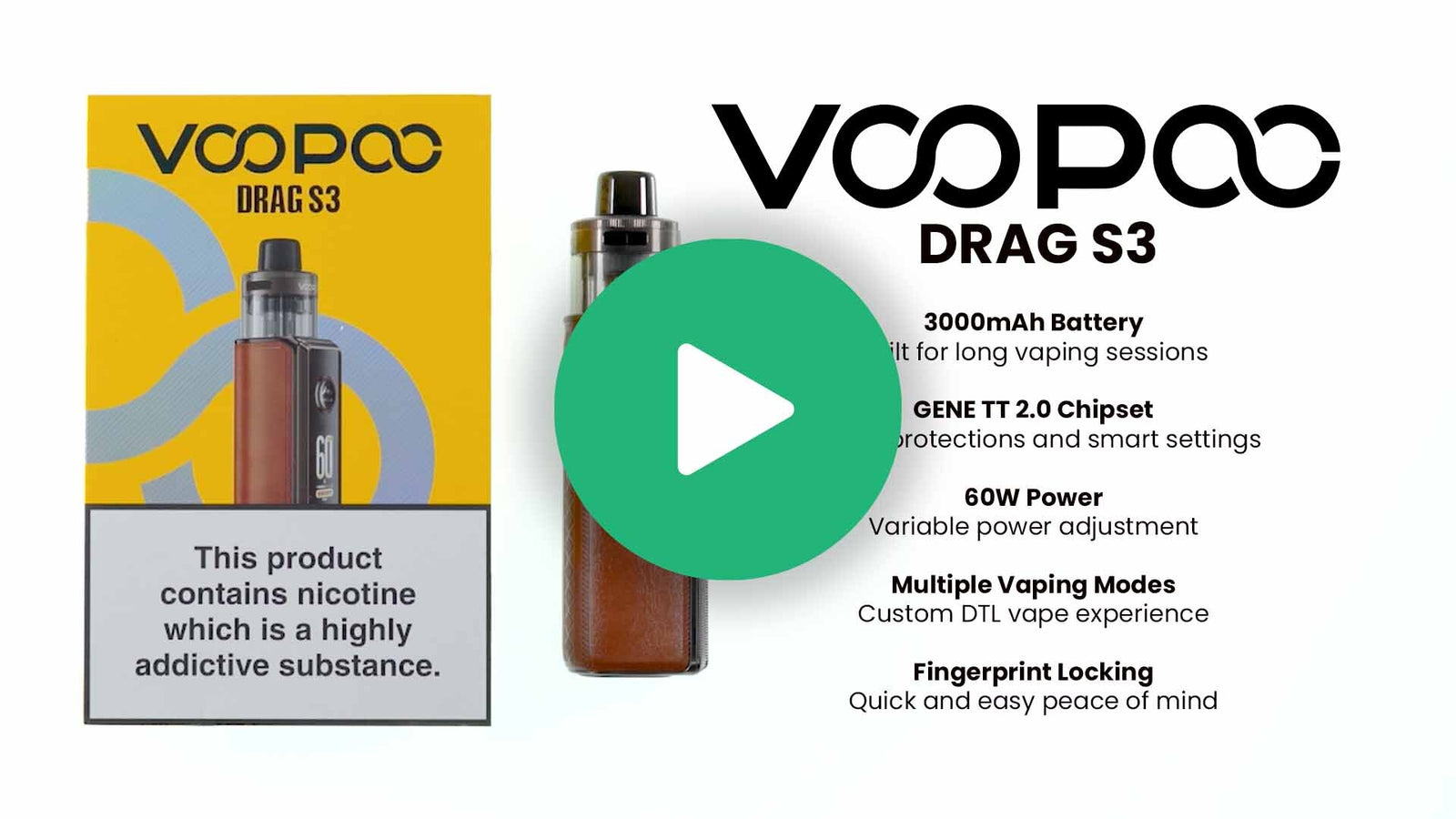 The Voopoo Drag S3 Pod Kit features a huge 3000mAh integrated battery with fast charging and a versatile 5-60W output for sub-ohm vaping. Easy navigation with the HD display, inhale activation, and the Gene TT 2.0 chipset with multiple power presets make this vape a breeze to use. The fingerprint locking system eliminates pocket firing. It is also compatible with the existing range of PNP X coils. Should we delve into some more detail?