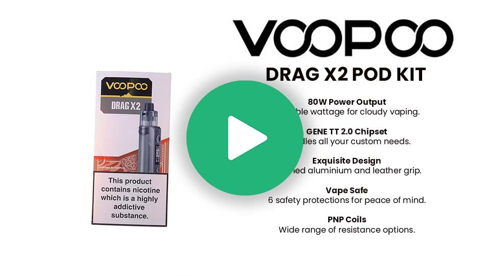 The VooPoo Drag X2 is a high-performance pod mod built for RDL and DTL vaping, powered by a single 18650 battery (sold separately). With up to 80W of adjustable output and compatibility with high VG e-liquids, it’s ideal for cloud chasers and flavour fans alike. Paired with the latest PnP X coil technology, this refillable pod kit delivers fast firing, smooth airflow, and outstanding flavour. Designed with VooPoo’s advanced GENE.TT 2.0 chipset, a 0.96" TFT display, and a durable leather-metal finish, the Drag X2 balances performance with everyday usability.