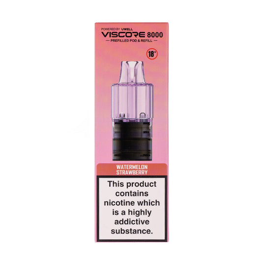 The Uwell Viscore Watermelon Strawberry Replacement Pod delivers a sweet, fruity vape with juicy watermelon and ripe strawberry flavours. Each pack contains a single pre-filled pod and an empty 10ml e-liquid container.