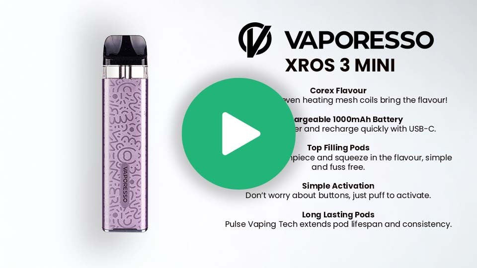 The Vaporesso XROS 3 Mini is a compact refillable pod kit built for simple, everyday vaping. A 1000mAh high-density battery delivers reliable all-day power and recharges quickly via USB-C. The 2ml XROS top-fill pod uses COREX mesh heating for fast ramp-up and clean, consistent flavour, while SSS leak-resistant design keeps your pocket mess free. Auto-draw activation means there are no buttons or menus to learn, just smooth performance in a device that’s 15% smaller than the standard XROS 3.