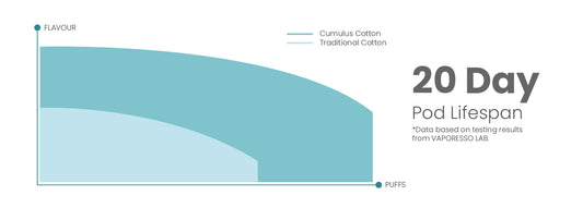 Pods typically last 1-2 weeks depending on usage and e-liquid type. Sweet or heavily flavoured liquids may reduce lifespan. Replace when flavour diminishes or you taste anything burnt.