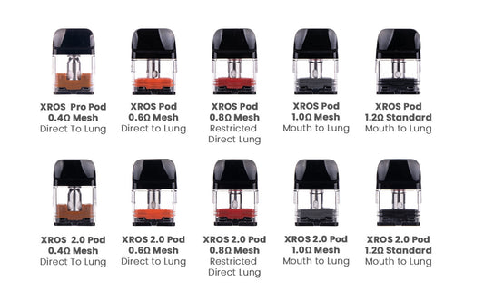 The XROS 4 is ideal for mouth-to-lung vapers however with adjustable airflow and the addition of the 0.4ohm mesh coil pods, this kit can also be used with high VG liquids. We would advise using the spare 0.8ohm pod with Nic Salts & Freebase 50/50 vape juice.