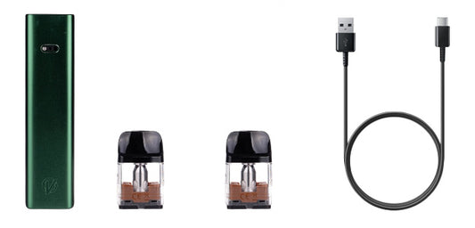 The 1000mAh internal battery provides a full day of moderate vaping and recharges in around 30 minutes with 2A USB-C fast charging.